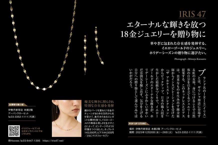 日経マガジン CHRISTMAS SPECIAL 2023にて、IRIS47を掲載していただきました。ぜひこの機会にご覧ください。