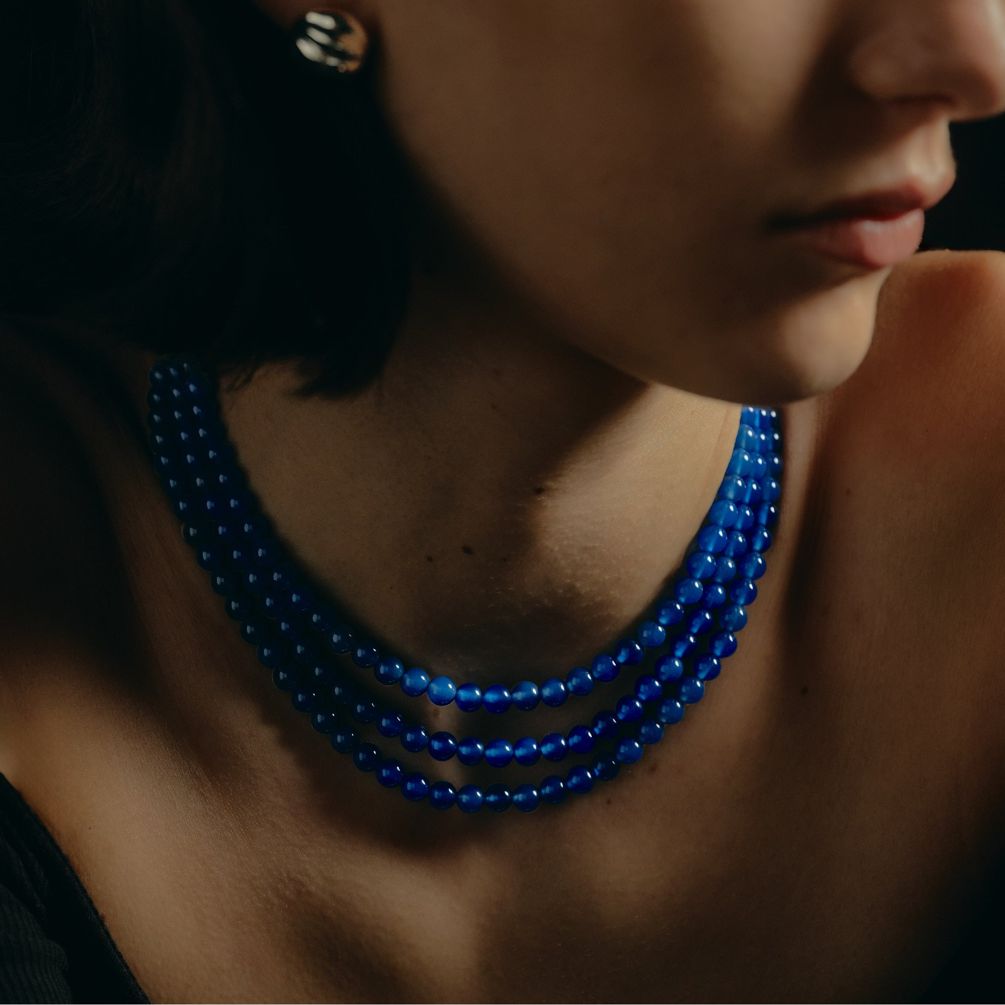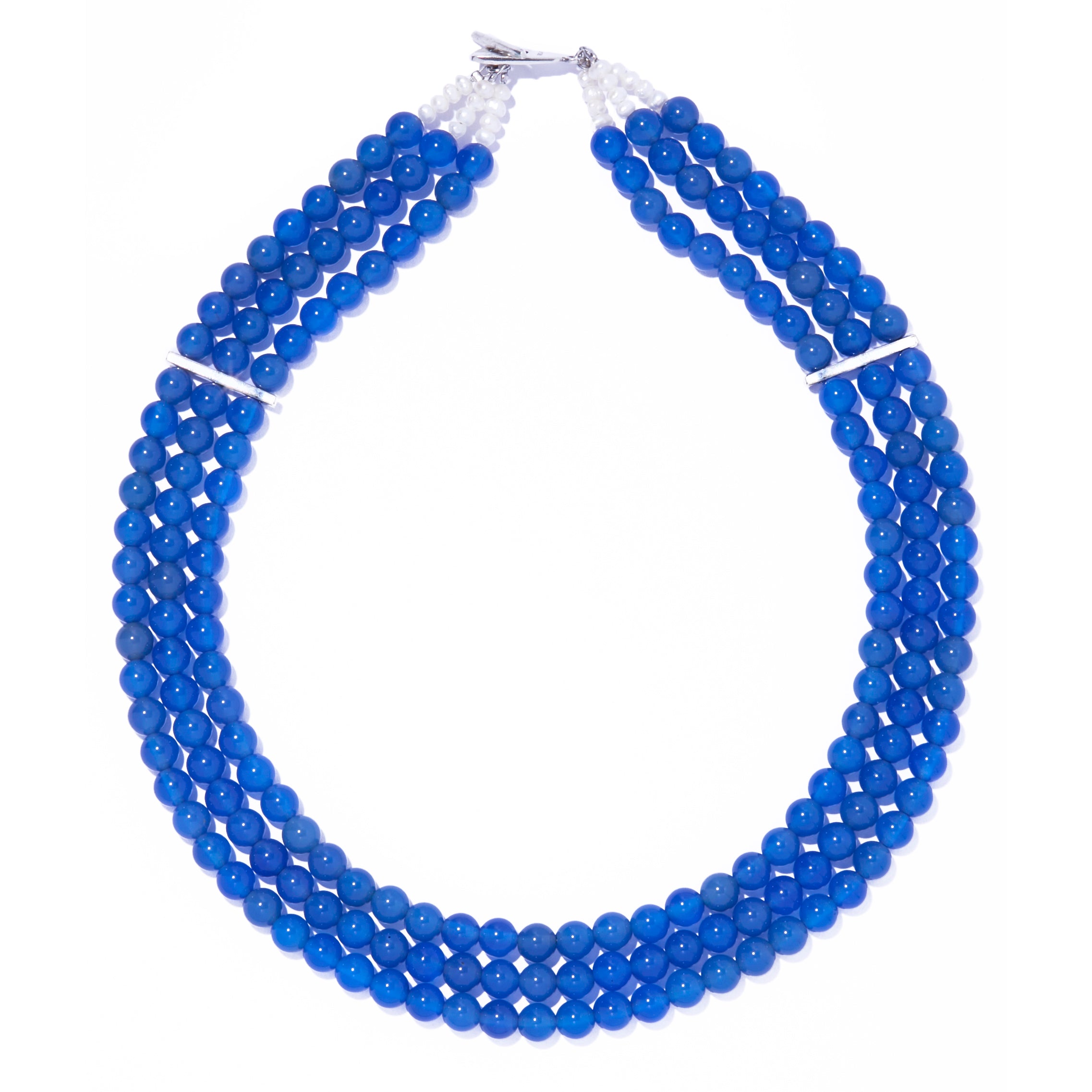 一粒だとクリアで穏やかなブルーアゲートも、均等に配したことで、聡明で凛とした佇まいを促します。