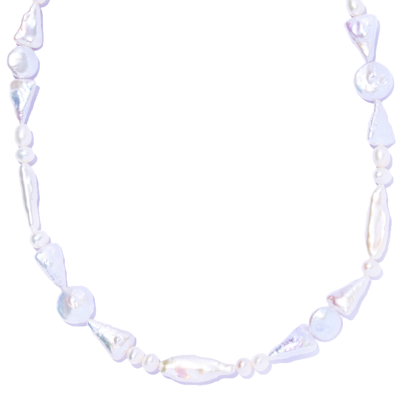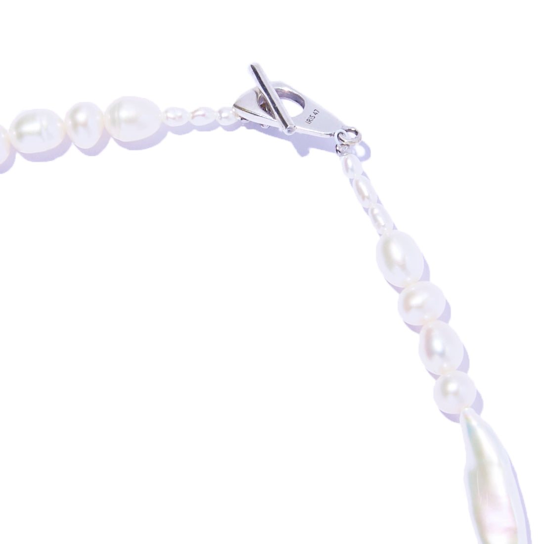 光を柔らかく反射し、爽やかで開放的なムードを纏うパールネックレス。