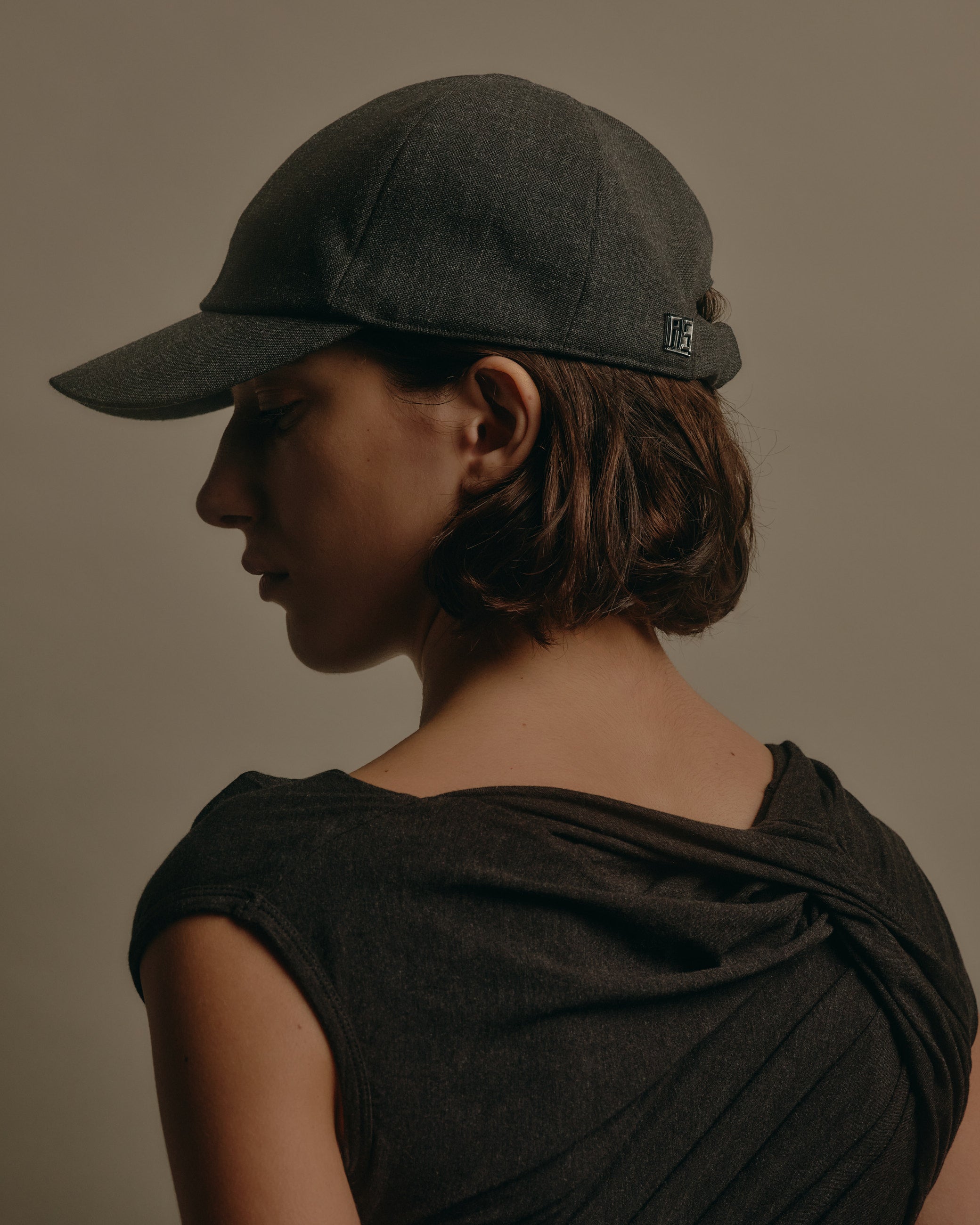 上質で目面の美しいサマーウールを用いた、ハンサムでシャープな佇まいのキャップ。