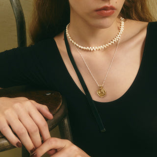 ランダムに配したパールがアクセントとなり、上品な中にチャーミングさを演出。