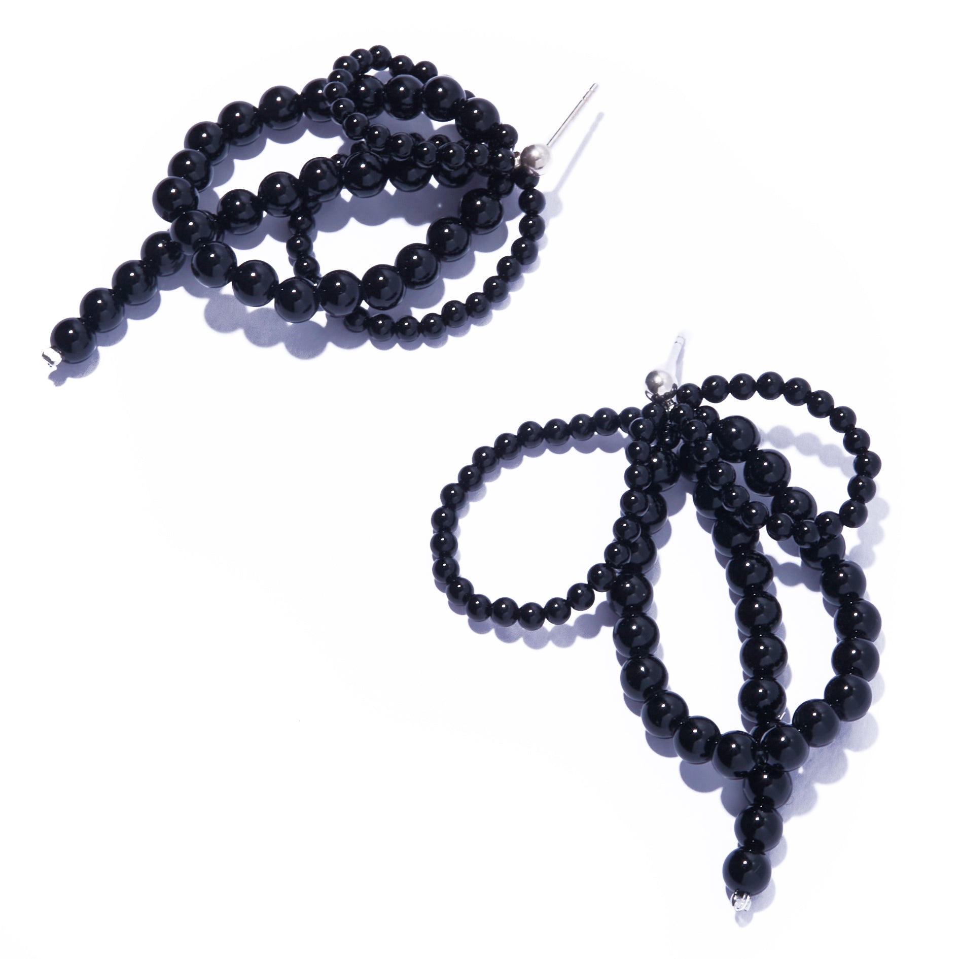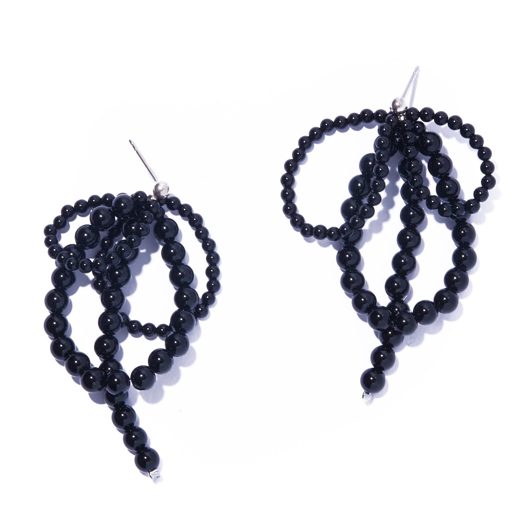 オニキスで構築されたフープが重なり合い、耳元に奥行きと丸みのある存在感を生み出します。