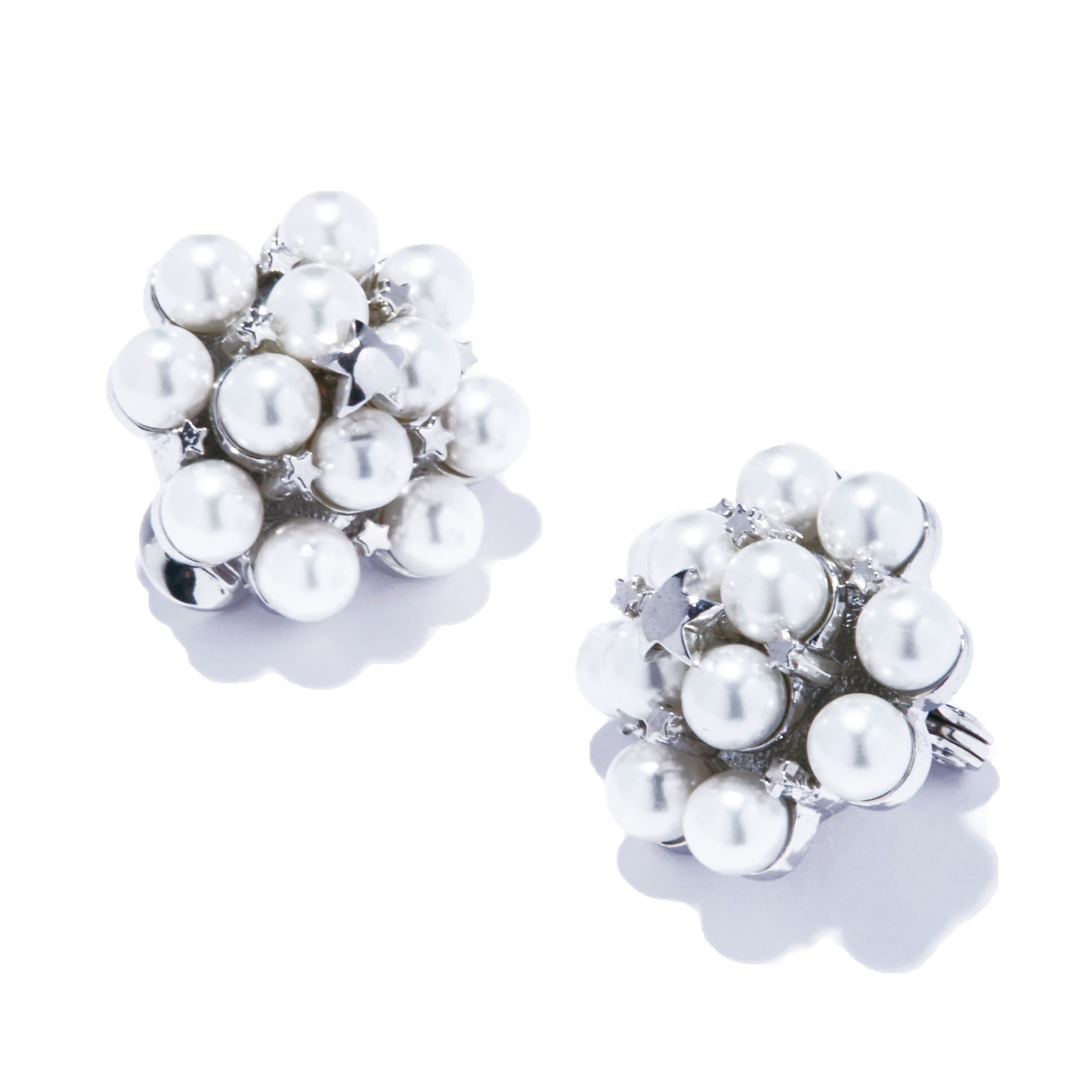 星屑が湧き出るような、夢と現のあわいを映したパールイヤリング。