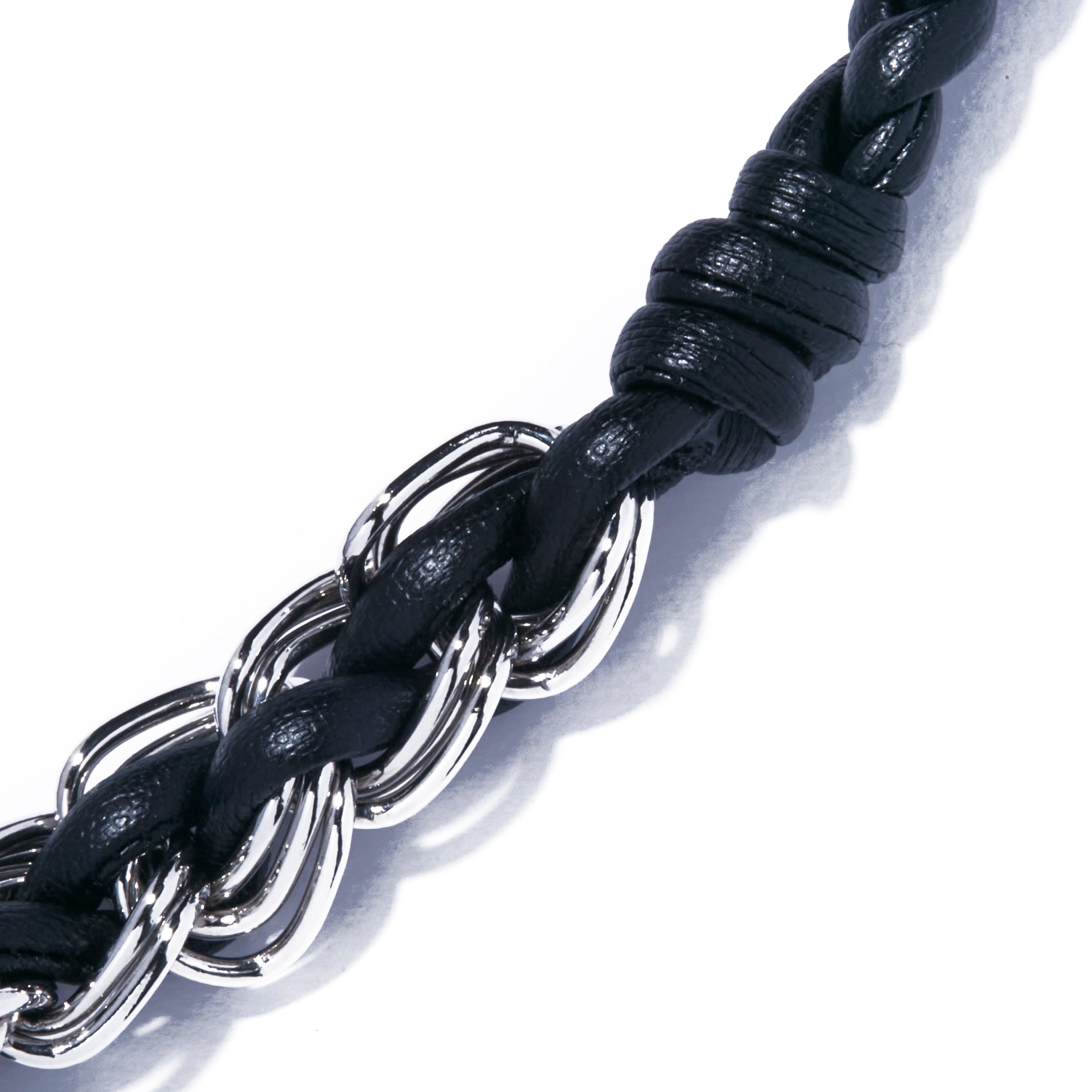 しっとりと滑らかなレザーと重厚感のあるメタリックが交錯したストラップ。