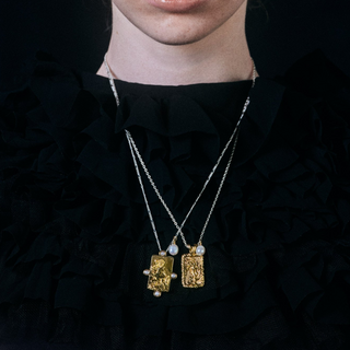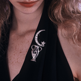 片耳に2つを着用すれば、オーセンティックなニットに幻想的な表情を宿せます。