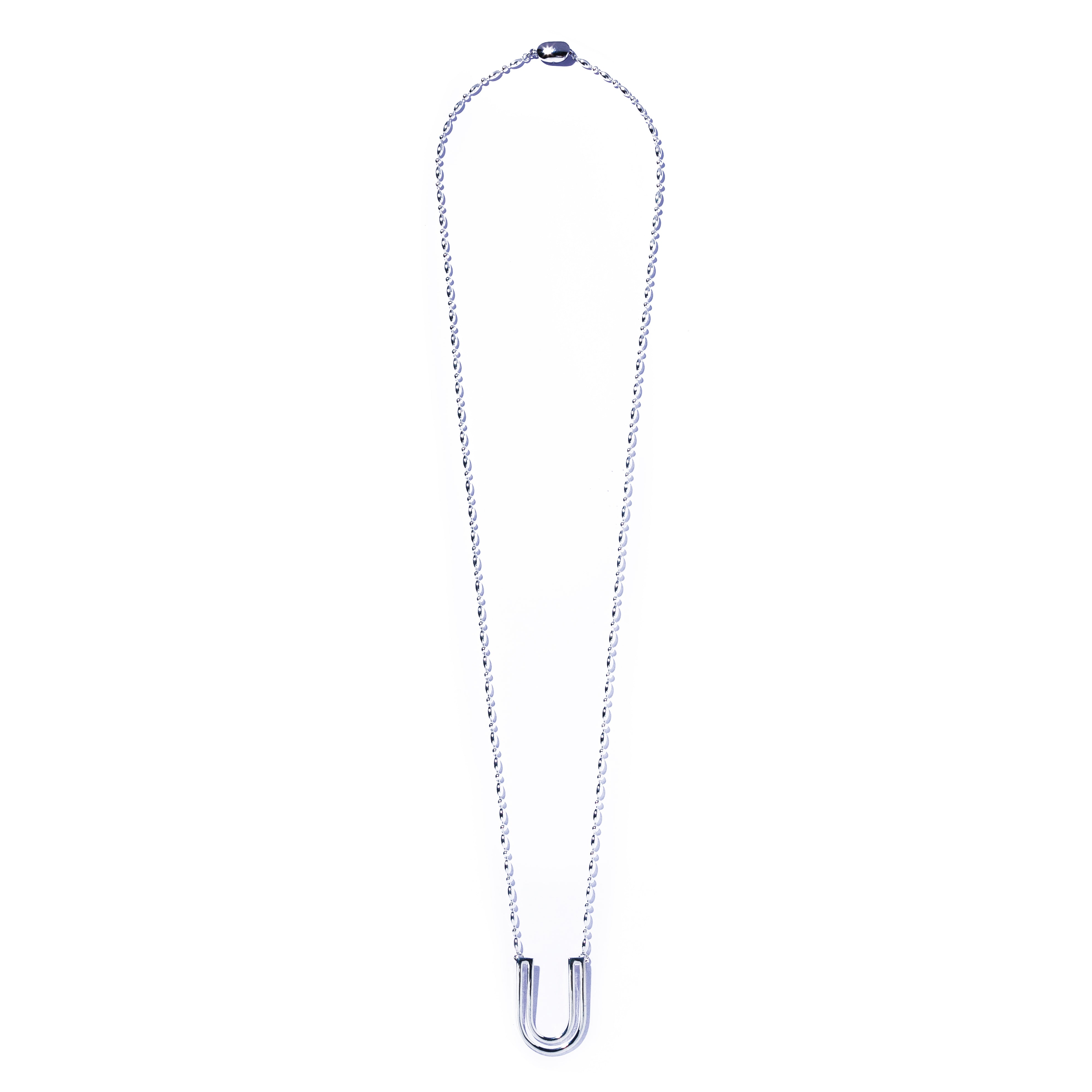 U型のフォルムが象徴的なワントップネックレス。動きがしなやかでモダンなデザインが特徴のチェーンが女性らしい印象を与えます。