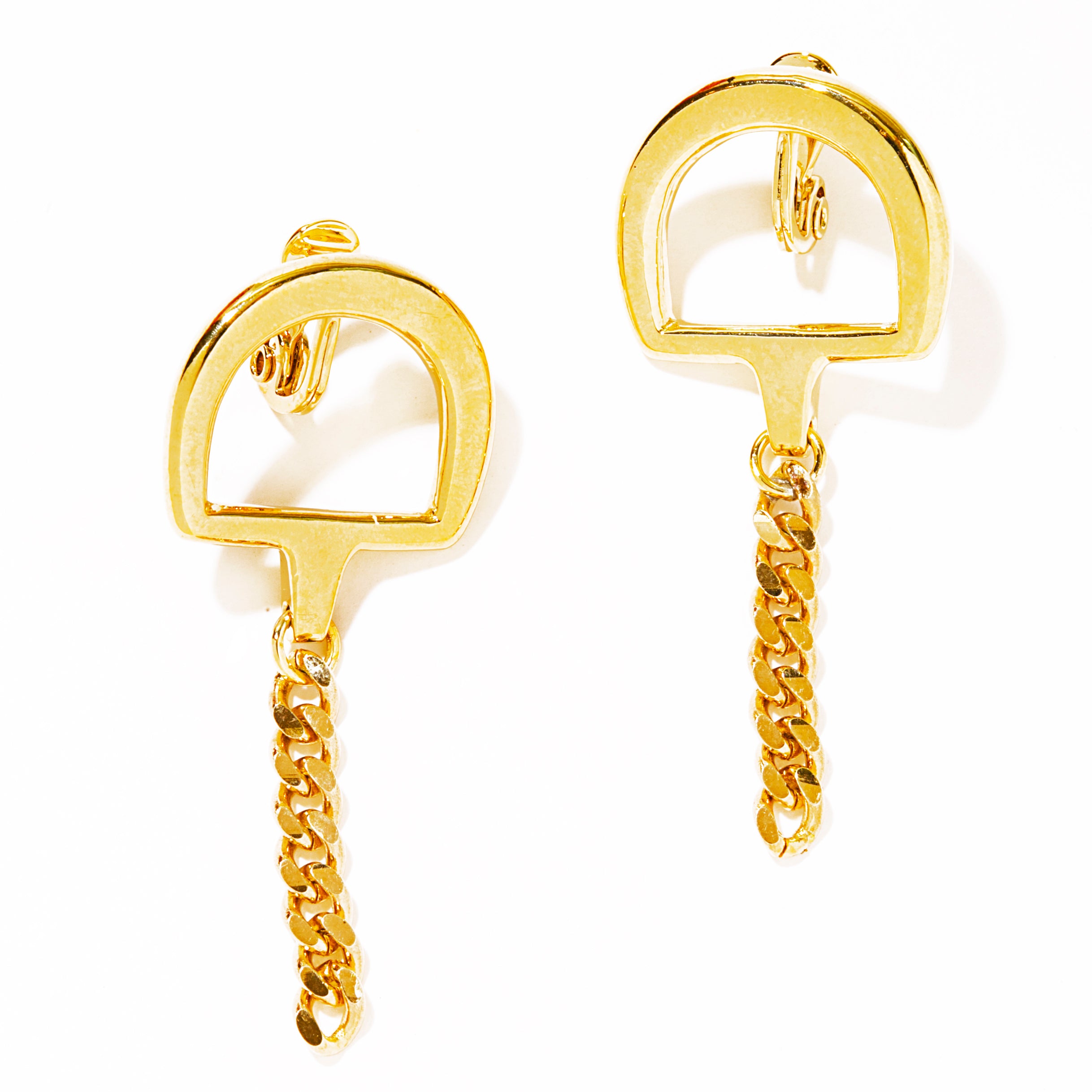 存在感のあるビットモチーフにチェーンを合わせたモダンな印象のイヤリング。