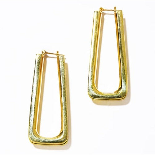 側面を削り出した凹凸と潔い直線からなるトライアングルシェイプが光を効果的に受けて輝く、モダンで存在感のあるピアス。
