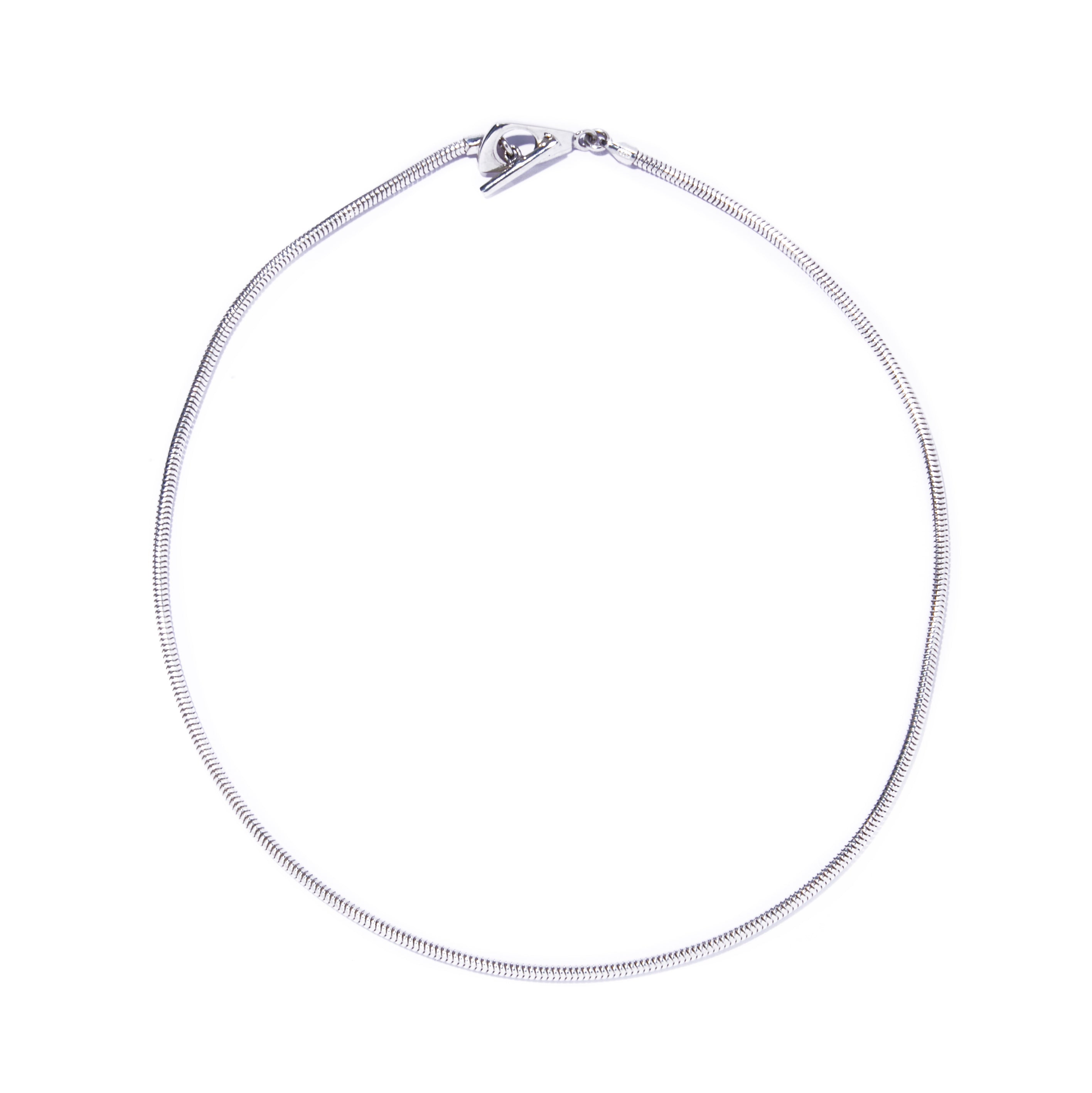 連なりの美しいシルバーが、光を静かに抱え込み、肌の上に流れるようなラインを生み出します。